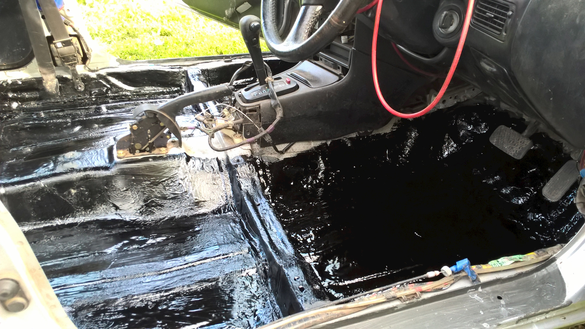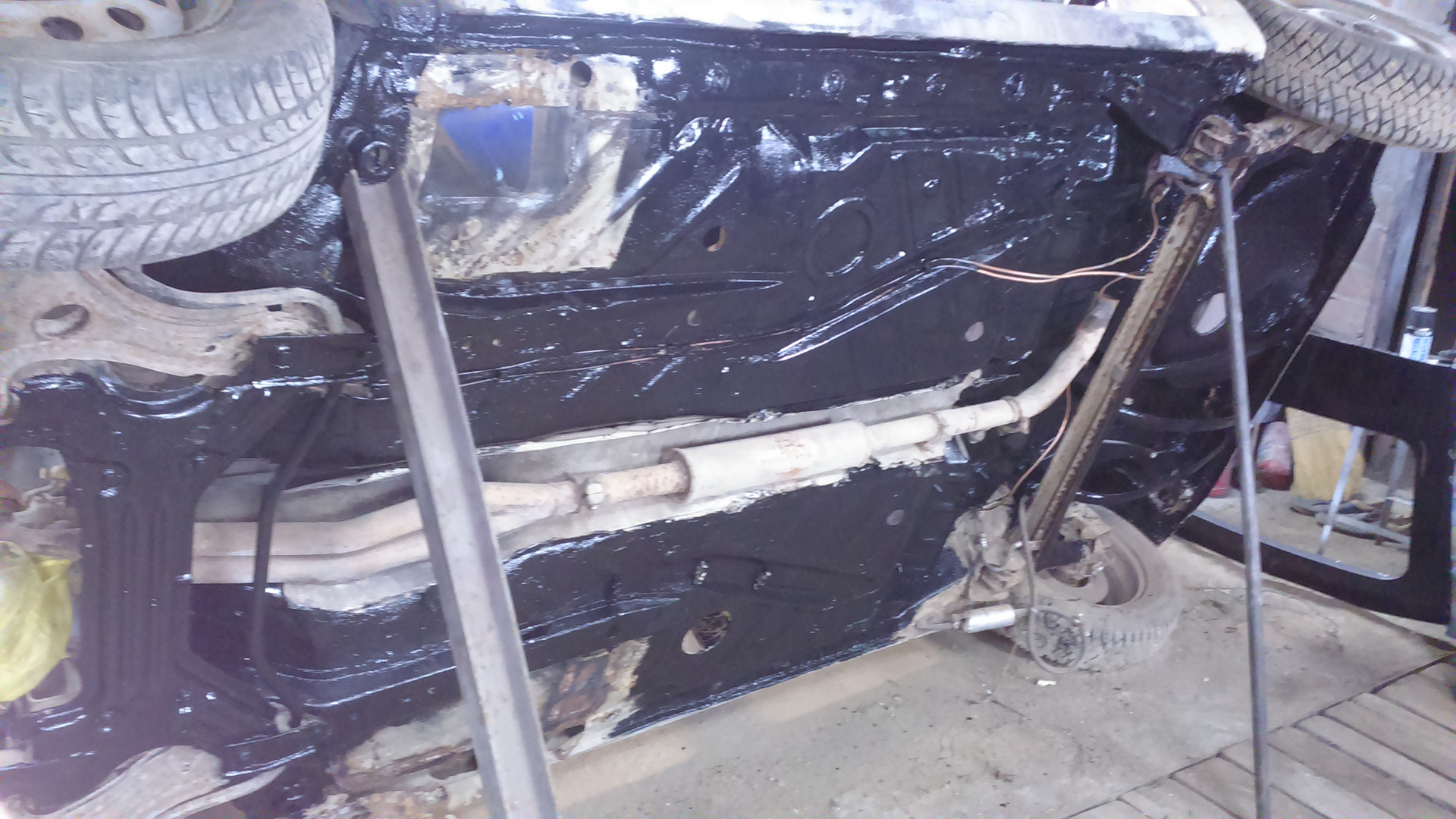 Обработка порогов битумной мастикой