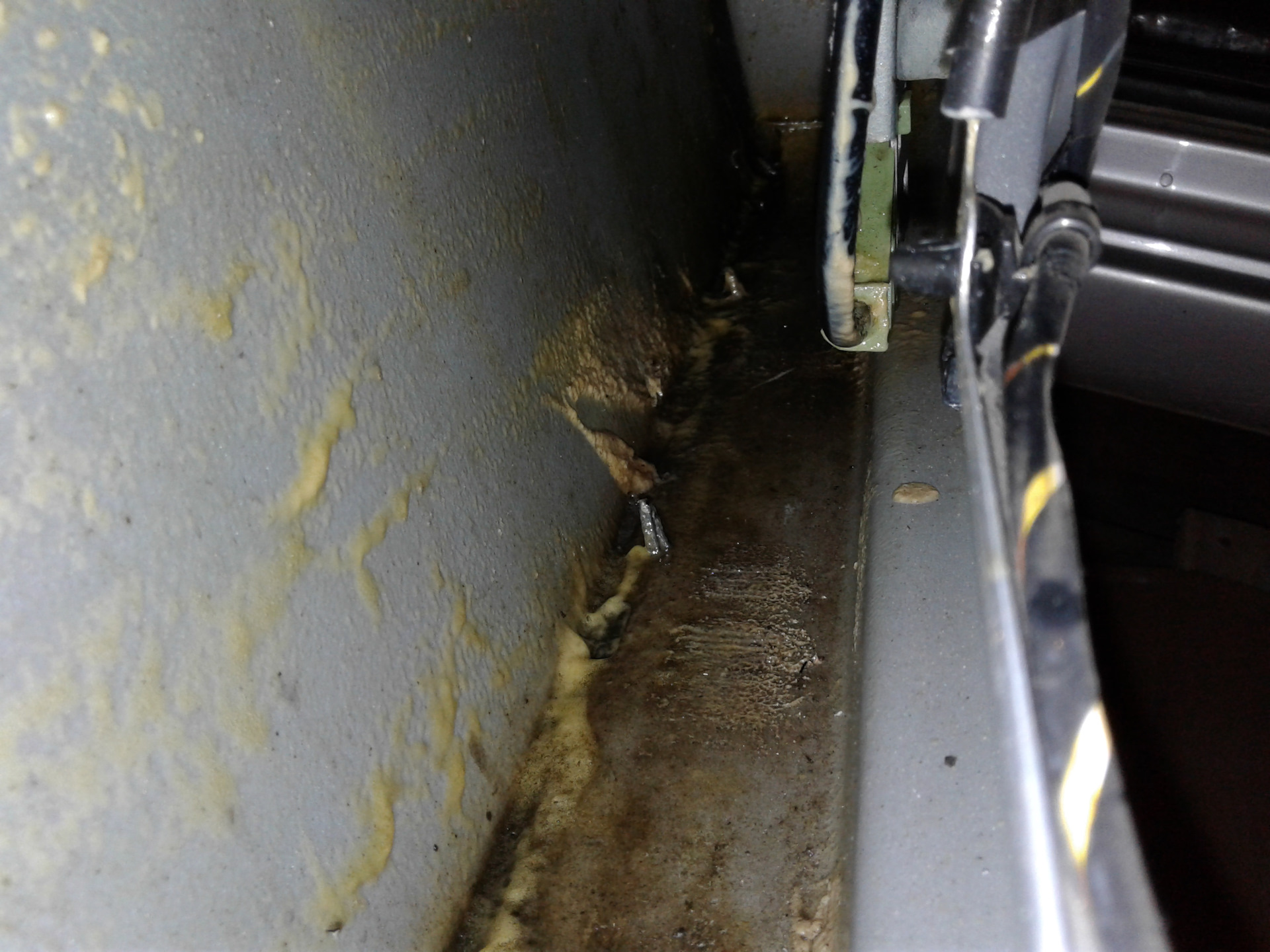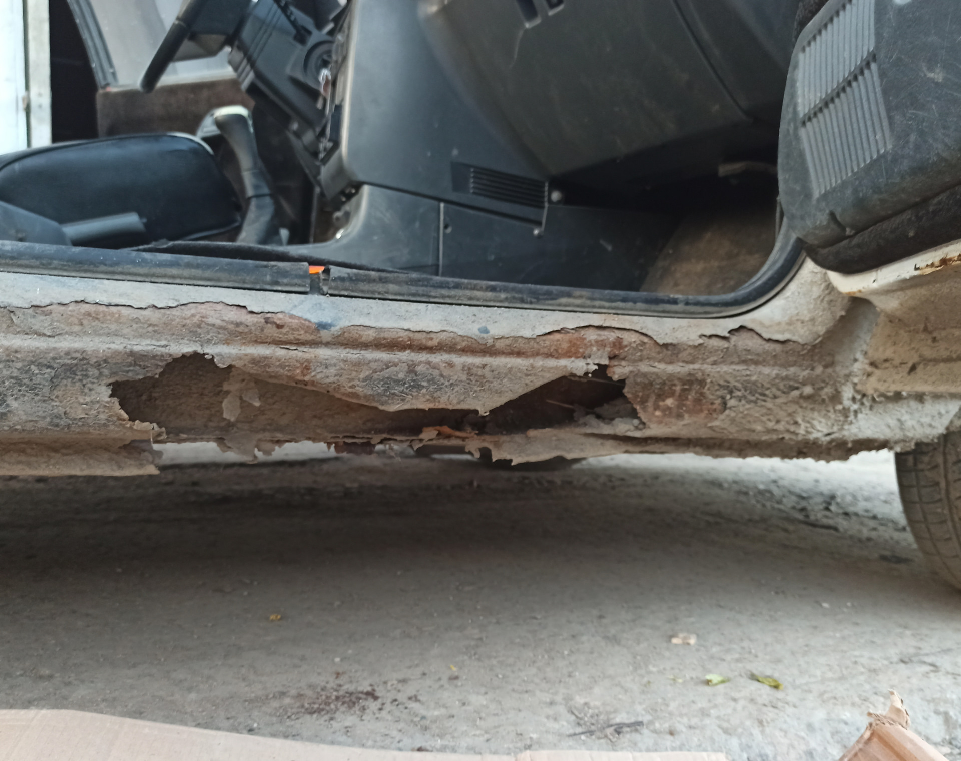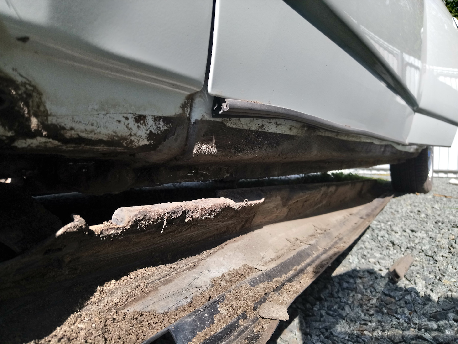 - Снимаем защитные элементы и внутренние части порогов. На этом же шаге важно промыть пороги, из старых автомобилей можно вымыть более килограмма песка.
