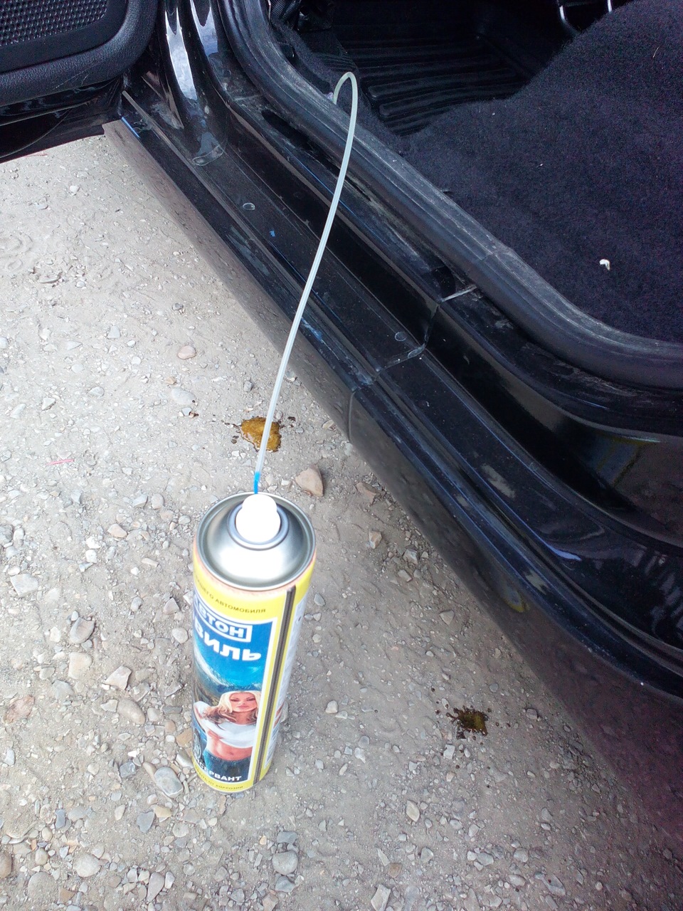 - Приобретаем пушечное сало. Пункт очевидный, но буквально несколько слов о емкостях и местах приобретения. Купить можно в большинстве автомобильных магазинов. Емкости обычно от 2 до 5 литров. В среднем на обработку одного авто (авто, а не порога) уходит около литра.