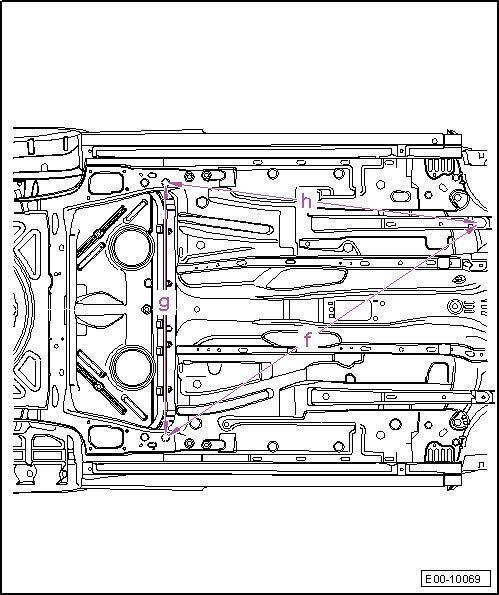 - Измерение диагоналей проводится масштабной рейкой. Контролирующие диагонали должны проходить через контрольные или базовые точки. Они должны пройти через направляющие отверстия рамы дальше к крепежам. Визуально оценивается симметричность полученных диагоналей. Затем считается расстояние между точками с одной стороны, затем противоположной. Полученные результаты измерений должны быть равноценными. Различие данных показывает на деформацию кузовной геометрии, которую придется исправлять кузовным ремонтом.