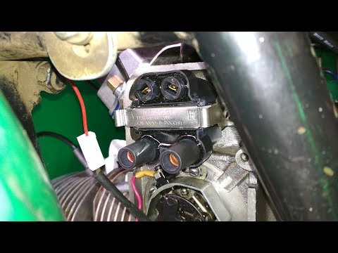 Катушка имеет два высоковольтных вывода и подает искру одновременно в оба цилиндра.