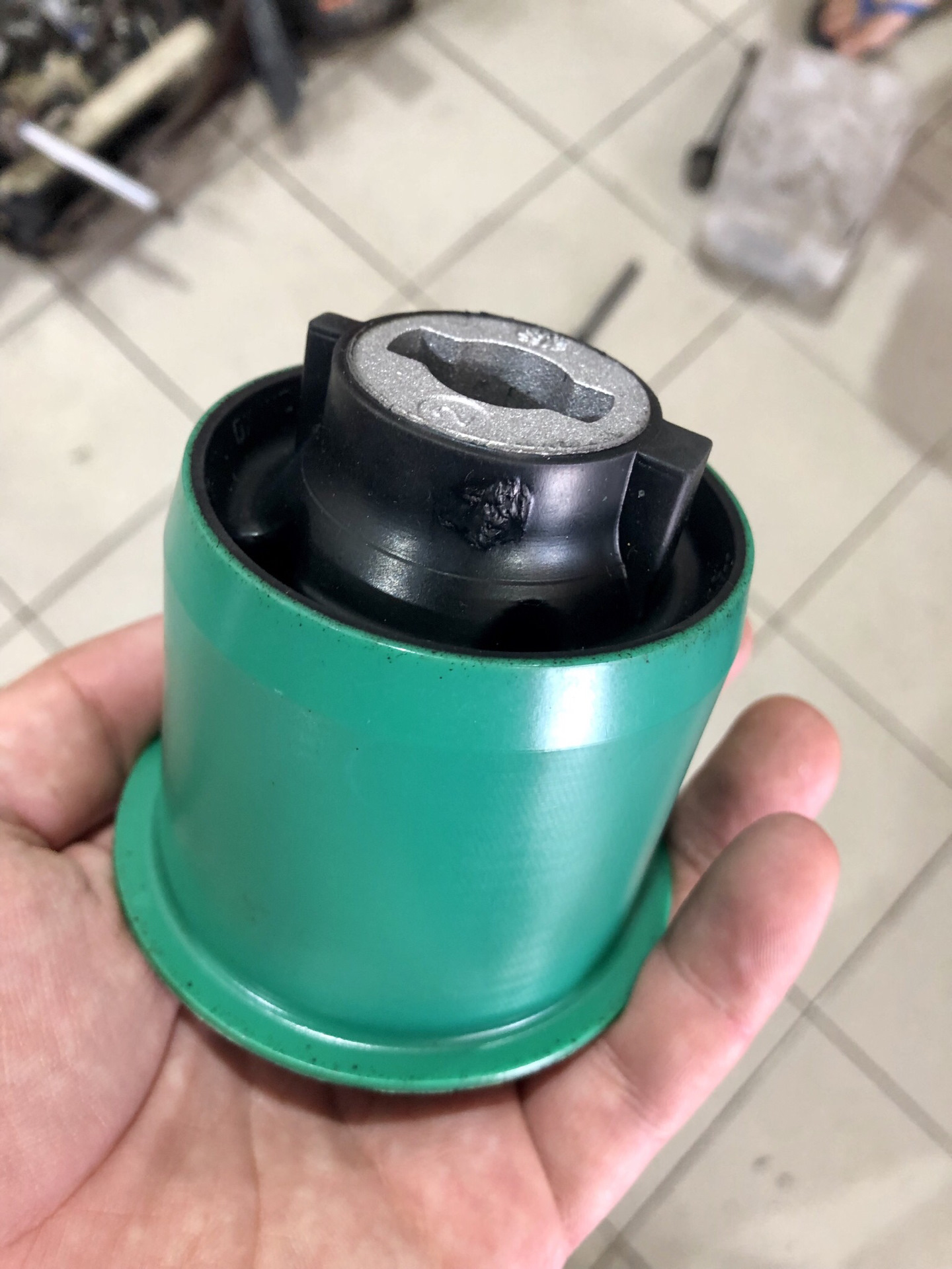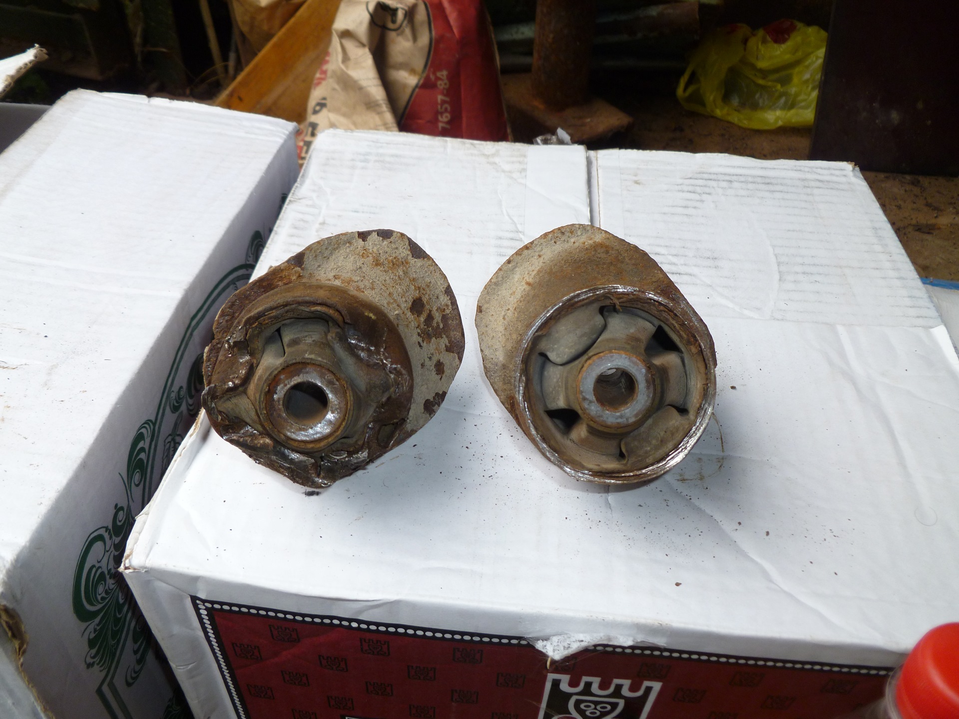 - Дальше впрессованный сайлентблок смазывается мыльным раствором и устанавливается на свое законное место. Возвращаем все на место, но уже в обратном порядке (кроме старых сайлентблоков, конечно).
