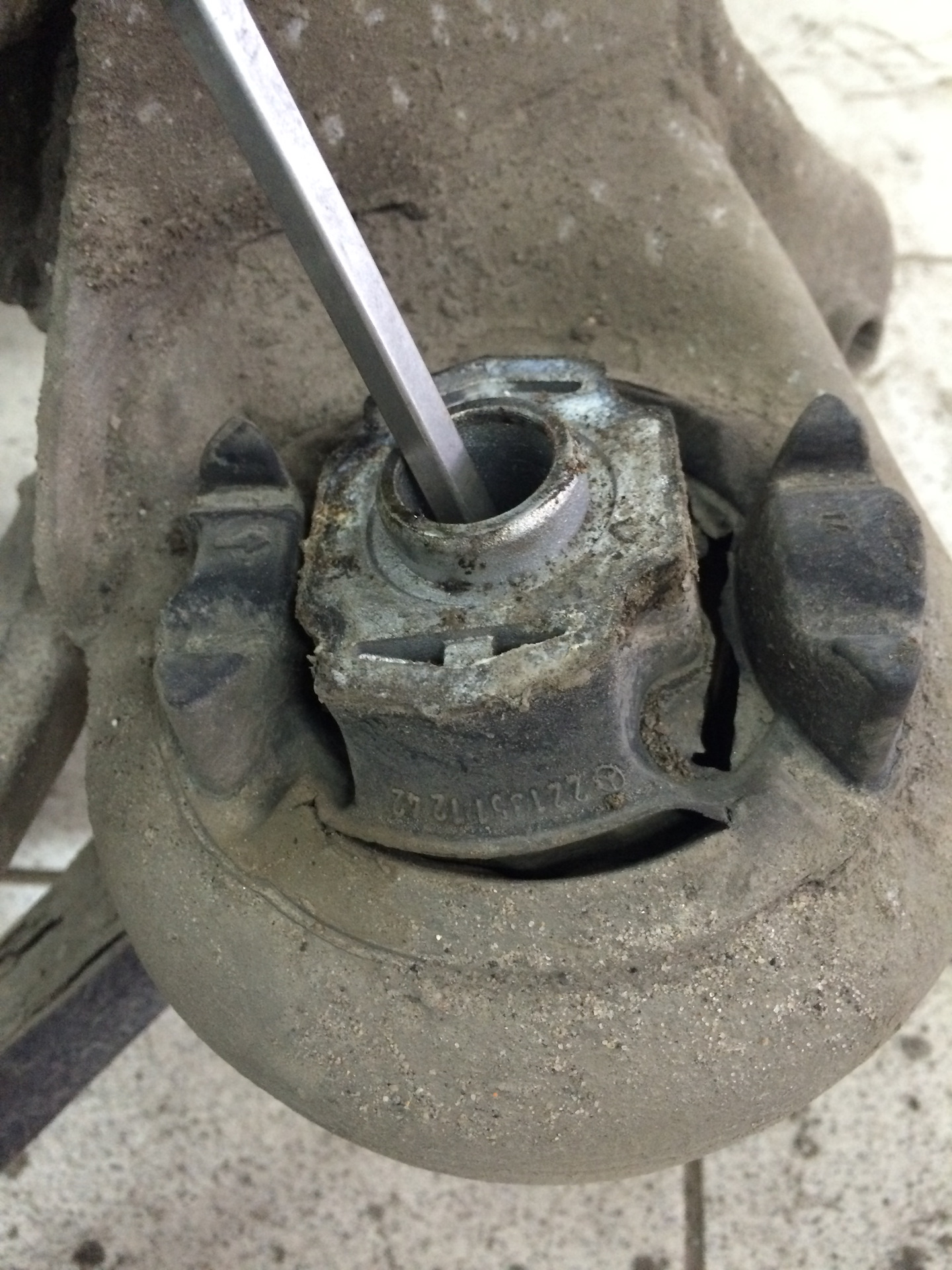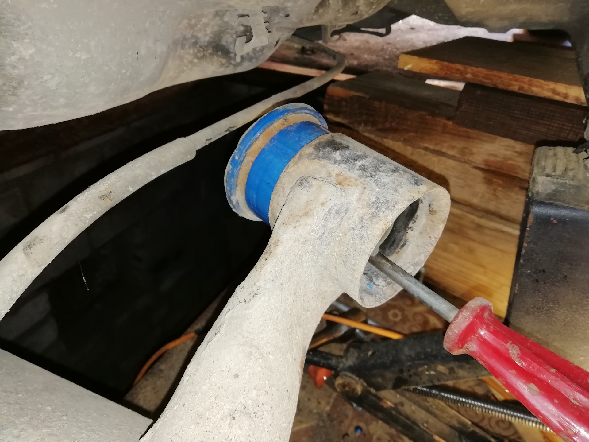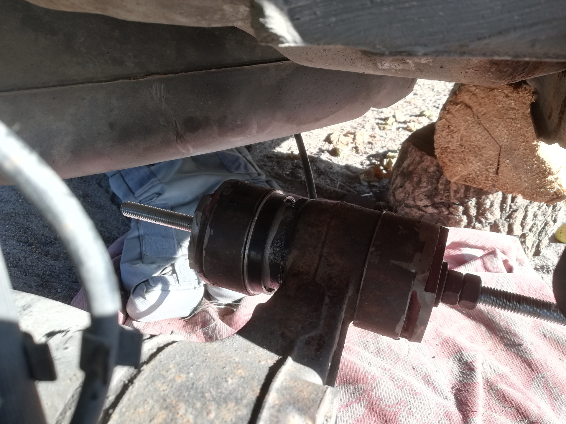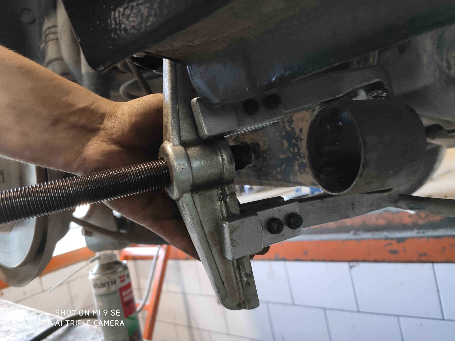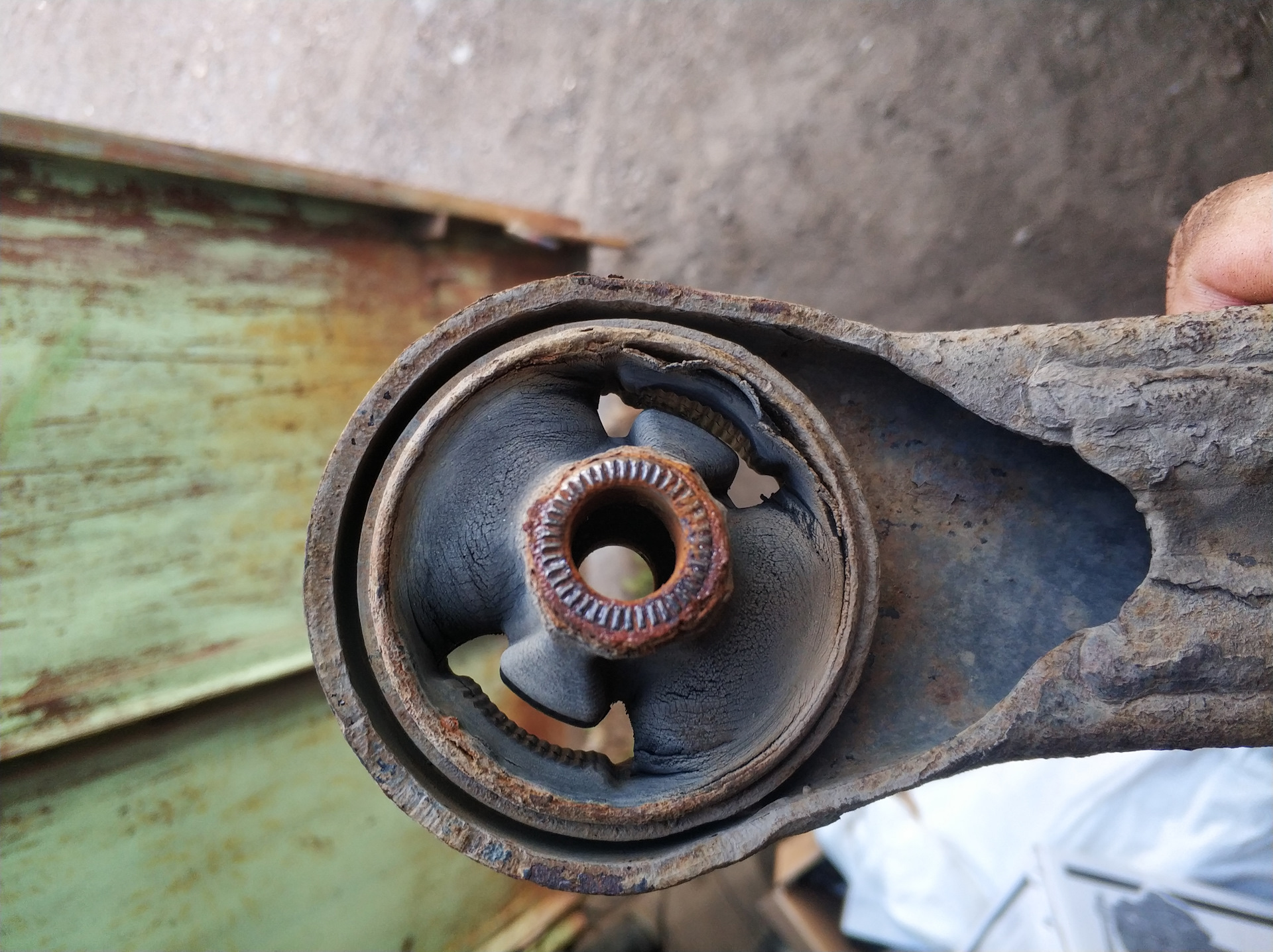 - Теперь с помощью специального приспособления демонтируются сайлентблоки, и очищаются от грязи проушины.