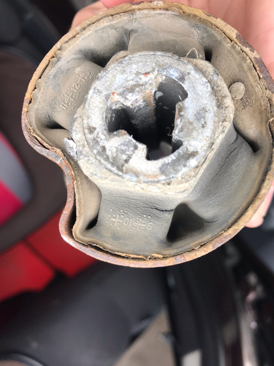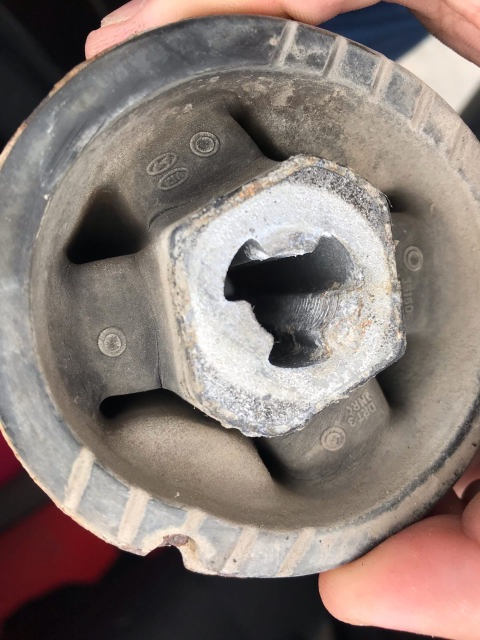 - Проверяем непосредственно сайлентблок: на стук внутри элемента, а также на наличие видимых механических повреждений и трещин (прим. – на резине и металле).