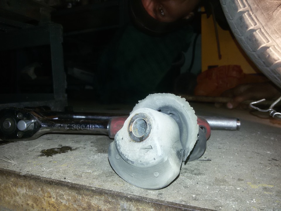 - Место демонтированного сайлентблока тщательно зачищается от пыли, грязи, ржавчины и так далее. Допускается использовать абразивные материалы. Затем обрабатывается слабым щелочным раствором (например, мыльная вода).