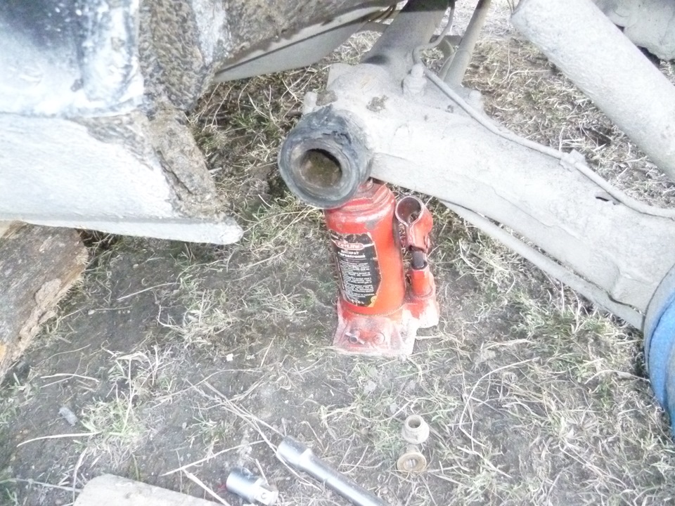 Иногда используют домкрат, но это создает ряд трудностей при манипуляциях необходимых при рассматриваемом виде монтажа. - Задние колеса рекомендуется демонтировать, чтобы обеспечить оптимальный доступ к заменяемым деталям.