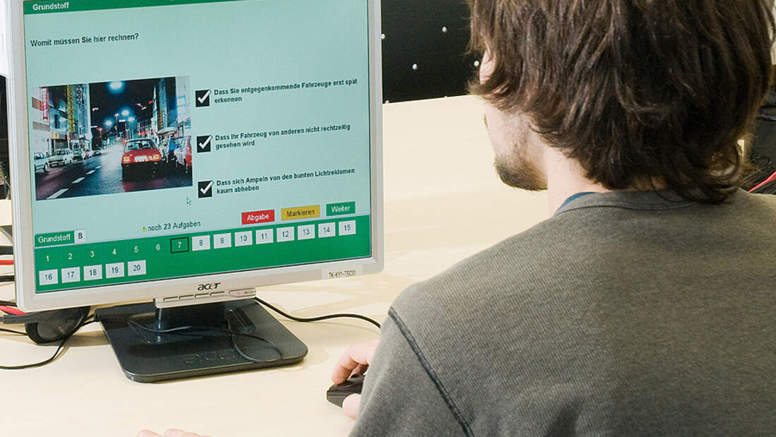 Теоретический экзамен проводится за компьютером в отделении ГИБДД. Программа автоматически формирует вариант экзамена из 20 вопросов. Вариант составляется из разных билетов и состоит 4-х тематических блоков, по 5 вопросов в каждом.