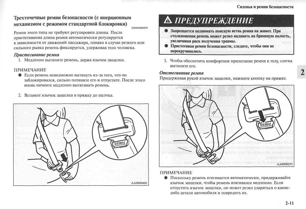 Перед использованием штатного ремня безопасности