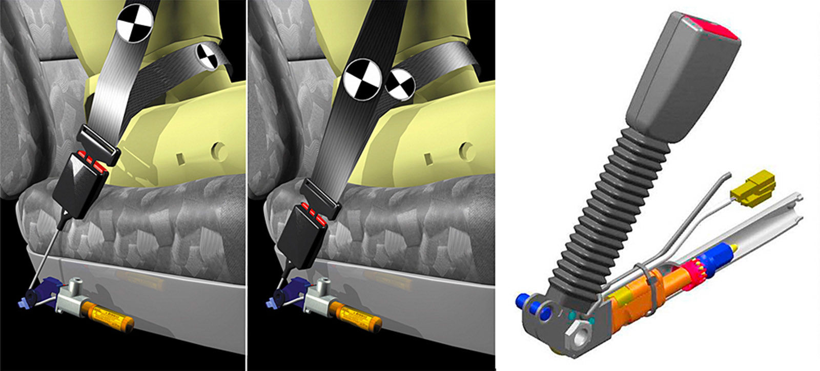 Кроме того, удержание пассажира на статичном месте делает более вероятным правильную и своевременную фиксацию этого пассажира подушками безопасности, что значительно повышает уровень их воздействия по сохранению жизни пассажира. Сами ремни безопасности создаются с использованием растягивающегося волокна, которое поглощает дополнительно возникшую кинетику за счет противодействия двух тел. Рассматривая систему ремней безопасности не стоит забывать и о так называемом энергопоглощающем устройстве, представленного в виде амортизаторов и удлинителей.