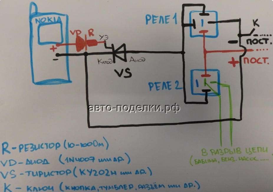 Главной деталью блокирования является реле, аналоговое или цифровое. Цифровое реле более предпочтительно, потому что оно срабатывает только после подачи зашифрованного сигнала. Такой сигнал идет по штатной проводке, специальному проводу или при помощи радиоволн.