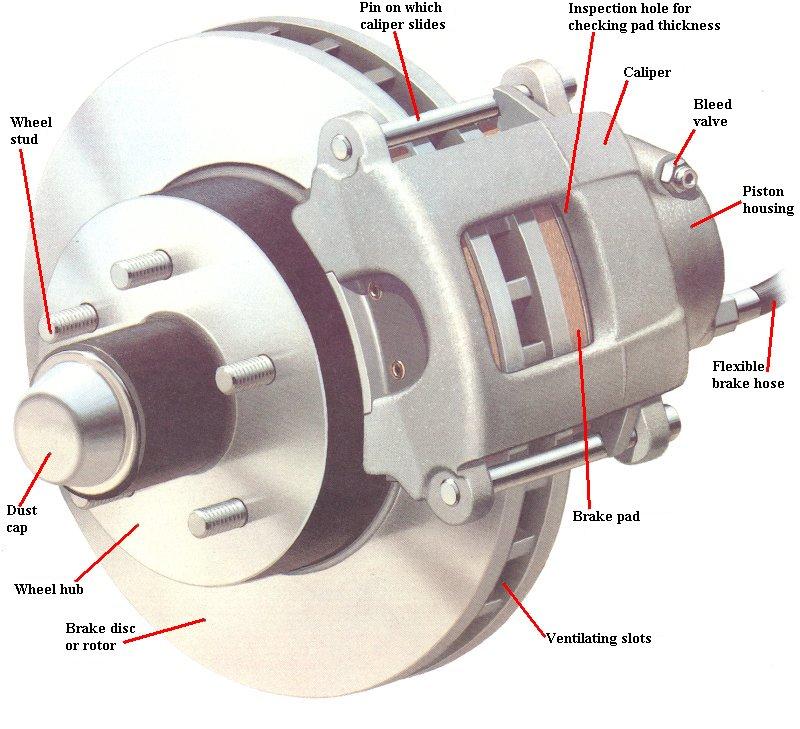 Постепенное давление педали тормоза заставит тормозной суппорт скользить по своим штифтам (болтам) и в то же время с силой прижимать внешнюю колодку к внешней поверхности ротора.