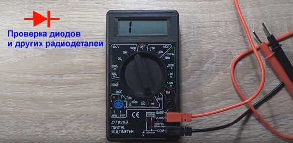 На устройстве есть секция оценки функциональности диодов. Для этого необходимо вставить щупы во второе и третье гнездо, их наконечниками замеряют сопротивление. Если в прямом и обратном направлении показатель будет одинаковым, то элемент неисправен.