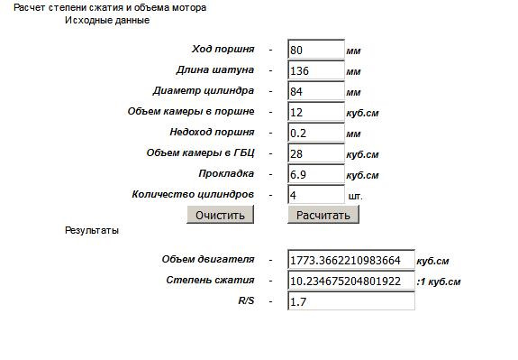 Теперь рассчитываем компрессию для нашего двигателя N