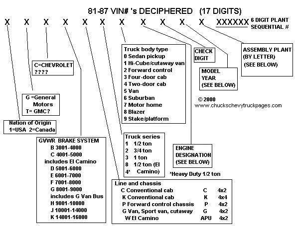 Вам нужно будет выполнить поиск в справочнике символов производителя, чтобы найти завод-изготовитель для вашего конкретного автомобиля.Последние шесть символов: Серийный номер автомобиля