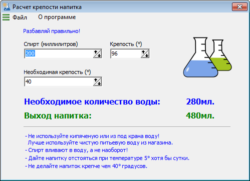 Калькулятор разбавления спирта водой