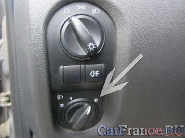 Устанавливаем переключатель корректора света фар в положение «0» (один водитель или водитель и пассажир на переднем сиденье) и включаем ближний свет фар.