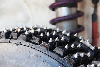 По правде говоря, единственный способ получить подобие безопасности при движении по черному льду — это шипованные зимние шины. Шипованные шины похожи на обычную зимнюю шину, с глубокими канавками, большим количеством боковин и резиновой смесью, рассчитанной на температуру ниже 30 градусов (по Фаренгейту). В отличие от обычных зимних шин, шипованные шины имеют крошечные металлические шипы, вставленные в протектор, предназначенные для врезания в пакеты со льдом, что, в свою очередь, снижает сцепление с дорогой даже в самых скользких обстоятельствах.