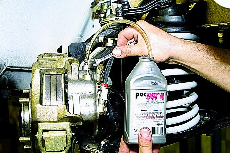 Суть проста: на тормозных цилиндрах откручиваются штуцера, а в бачок постоянно подливается новая «тормозуха». Рекомендуется одевать на штуцера прозрачные трубки, они позволят увидеть момент, когда начнет вытекать новая жидкость.