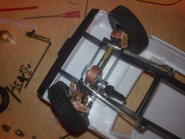 Колеса крепятся попарно на болтах или кнопках. Раскрашиваются детали отдельно, потом все собирается вместе.