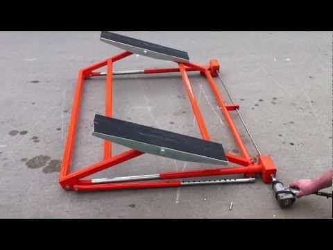 Но имеется более простой и адаптированный для производства в гаражных условиях вид автоподъёмника, переворачивающий авто набок под углом 45°-60° и именуемый опрокидывателем.