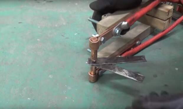 Его тоже можно сделать своими руками. Обычно используют медные прутки круглого сечения, бронзовые или медные трубки, которые очень удобно соединять с токоподводящим кабелем. Со стороны рабочей части электрода необходимо сделать прорезь, куда будет вставляться шайба для приварки. Если для изготовления электрода вы используете трубку, то её рабочий конец необходимо расплющить, и уже потом делать на нём соответствующую прорезь.