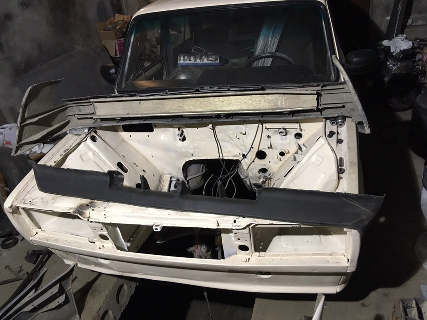 На подготовительном этапе с машины демонтируется передний бампер и облицовка радиатора.