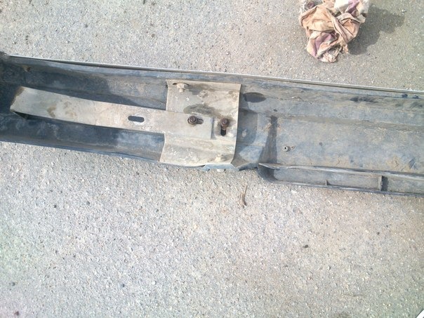 - Бампер закрепите на уголке подготовленными болтами с гайками. Поскольку буфер выдвинулся вперёд, боковые крепления ставить не нужно — просто заверните штатные болты в отверстия и затяните.