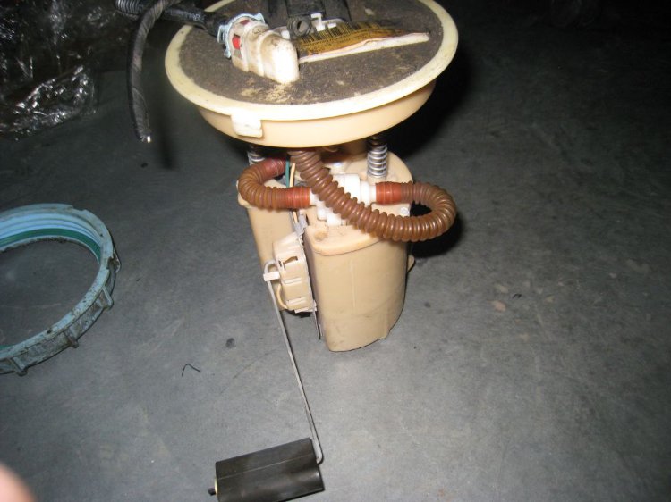 У вас есть только один болт, который держит насос на месте. Удалите его и зажим на шланге, и вы можете удалить старый насос. Соблюдайте осторожность, чтобы не тянуть и не дергать топливопровод в баке.