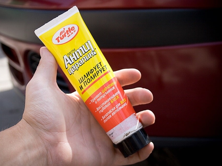 - Нанесите акриловое средство для удаления царапин на участок — следуйте инструкциям на упаковке.