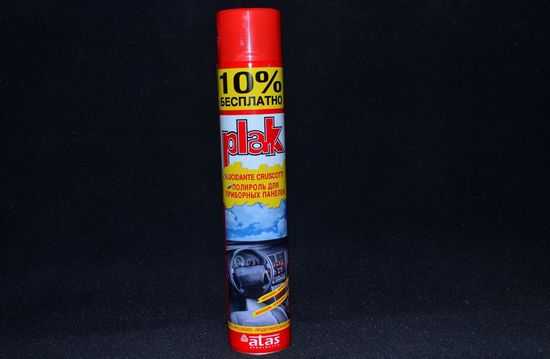 Есть ещё полироль для приборной панели «Atas Plak» (баллон 750 мл). В составе средства силикон, который придает блеск и защищает салон от пыли.