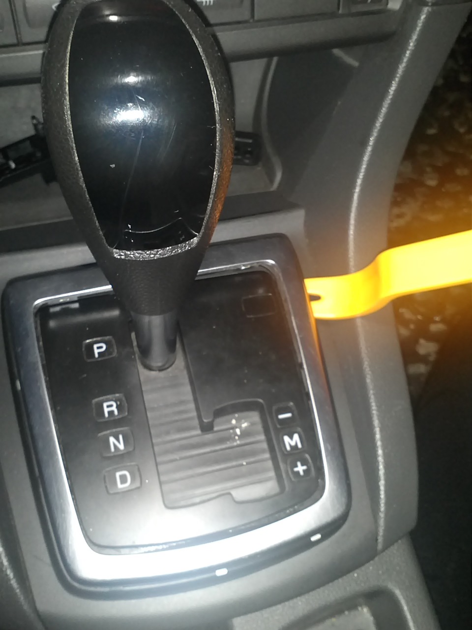 - Переключить ручку селектора АКПП типтроник в область для ручного режима. Это Т-образная выемка на селекторе.