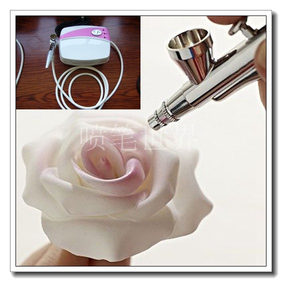Этот инструмент удобен для придания нужного цвета десерту. Специальных приборов именно для пищевых продуктов нет. Кондитеры пользуются такими же аэрографами, как и строители. Инструмент одинаково хорошо распыляет как водоэмульсионную краску, так и пищевую.