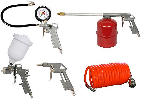 Какое оборудование выбрать для компрессора при покраске дома, каждый решает сам. Это может быть краскораспылитель с верхним или нижним бачком, пневмопистолет для вязких жидкостей, наконечники с регулируемой формой сопла. Некоторые производители продают вместе с компрессором набор пневмоинструмента, из которого каждый сможет подобрать орудие для комфортной работы.