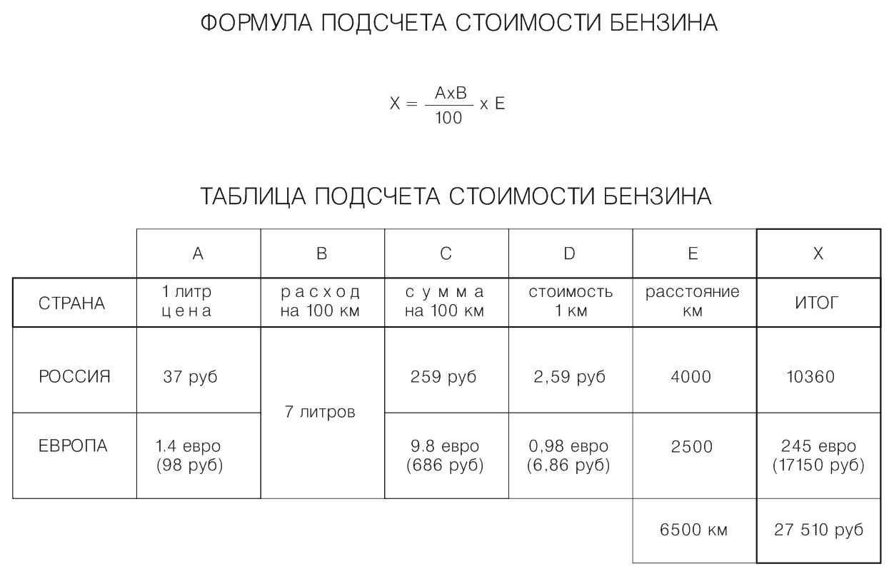 Как применять формулу стоимости топлива для поездки: