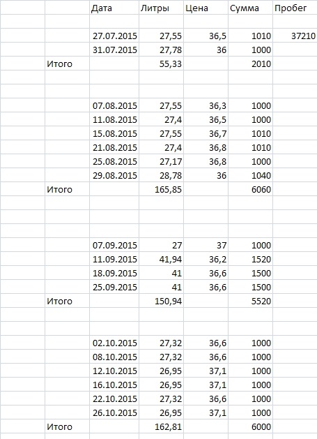 | Расход бензина | |