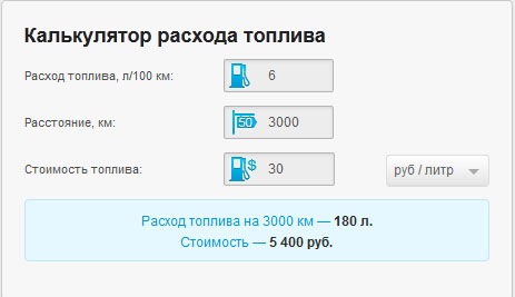 Калькулятор стоимости топлива
