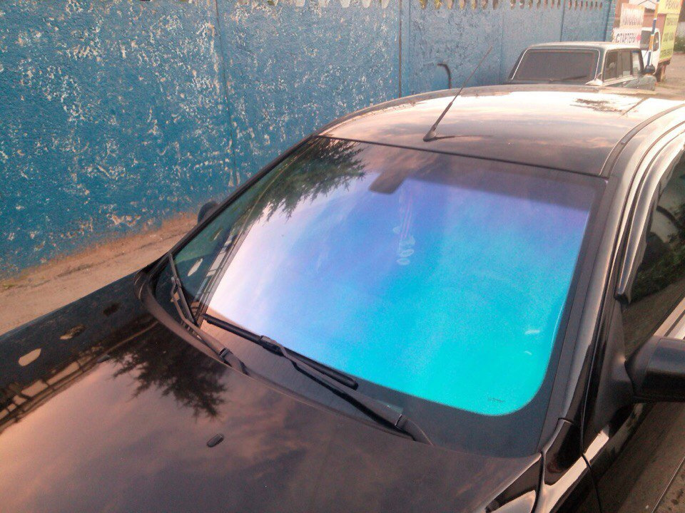 Про черную тонировку лобового стекла знают все. Но постепенно приходит понимание, что нужно соблюдать регламенты по затемнению стекол, иначе можно нарваться на штраф. Среди тех, кто следит за тенденциями в автомобильном тюнинге, существует немало сторонников другого вида покрытия. В отличии от однотонного тонирования, такое покрытие обладает сразу несколькими цветами и переливается бесчисленным множеством промежуточных оттенков. Называется такая тонировка лобового стекла — хамелеон.