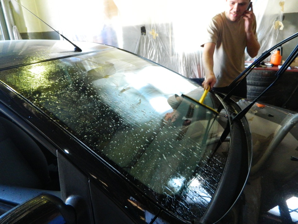 В целом, особых отличий по нанесению на стекло нет, процедура тонирования происходит как обычно.