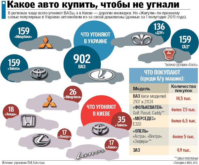 По статистике, наибольшей популярностью у угонщиков пользуются автомобили марок: Форд, Мазда, БМВ, Хонда, Шевроле, Ленд Ровер. Это объясняется, во-первых, тем, что в городе их достаточно большое количество, а, во-вторых, тем, что эти марки просты в проникновении и хищении. В Приморском районе г.Санкт-Петербурга наиболее подверженным преступным посягательствам является перекрёсток пр. Богатырский – ул.Савушкина, а также улицы и проспекты: пр.Комендантский, пр.Авиаконструкторов, ул.Туристская, пр.Приморский, пр. Королева, пр.Серебристый, ул.Яхтенная, пр.Новоколомяжский, ул.Оптиков, ул.Камышовая.