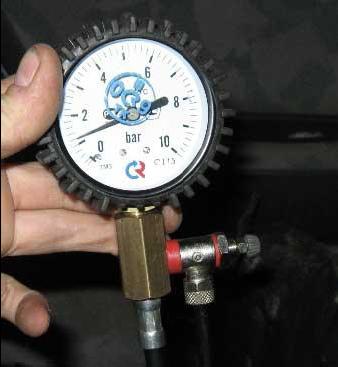 Просто запускаем двигатель и смотрим на показания манометра. Нормальным является давление в 2,5-2,7 атмосферы.