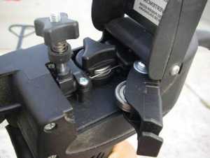 - Чтобы настроить поток защитного газа более точно, на рабочий режим, выключите подачу проволоки, чтобы при нажатии на курок горелки она не расходовалась. Можно не отключать проволоку, а нажать до момента, когда проволока начинает двигаться. В таком положении настройте поток воздуха вентилем на редукторе, глядя на индикатор.