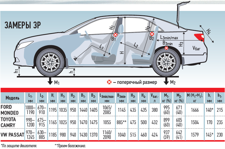 Габаритные размеры Ford Focus: интерьер | По сравнению с аналогичными автомобилями | ||