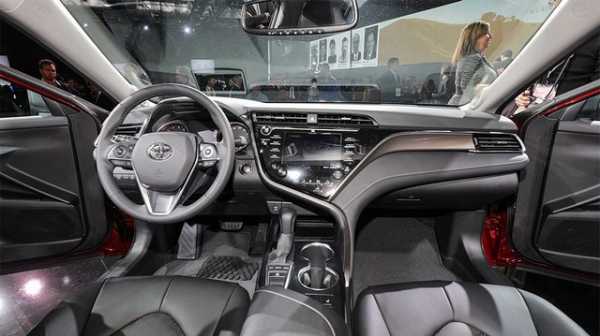 Место водителя Toyota Camry 2018Toyota Camry 2018 станет одним из первых седанов среднего класса, предлагающих вариант проекционного дисплея, который превращает салон автомобиля в кабину истребителя. 10-дюймовый монитор проецирует информацию (включая скорость движения авто и систему навигации) прямо в поле зрения водителя, избавляя от необходимости отрывать взгляд от дороги во время следования по заданному маршруту.
