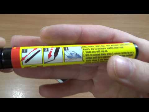 Прежде чем наносить карандаш или краску на поверхность авто, емкость необходимо несколько раз взболтать. Наносится состав при помощи кисточки, которая входит в комплект, краской не спеша, очень аккуратно заполняется поврежденное место. Во многих случаях краситель попадает на соседний участок кузова, рядом с царапиной. Если такое произойдет, можно обработать наждачной бумагой краситель, пока он полностью не затвердел. Вместо наждачной бумаги используют антицарапин или специальную шлифовальную пасту. Специалисты советуют также использовать обычный растворитель для устранения подтеков.