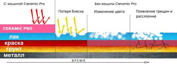 - Керамика на авто блокирует воздействие ультрафиолетовых лучей, благодаря чему поверхность авто не выгорает, не тускнеет, сохраняет свое первоначальное состояние