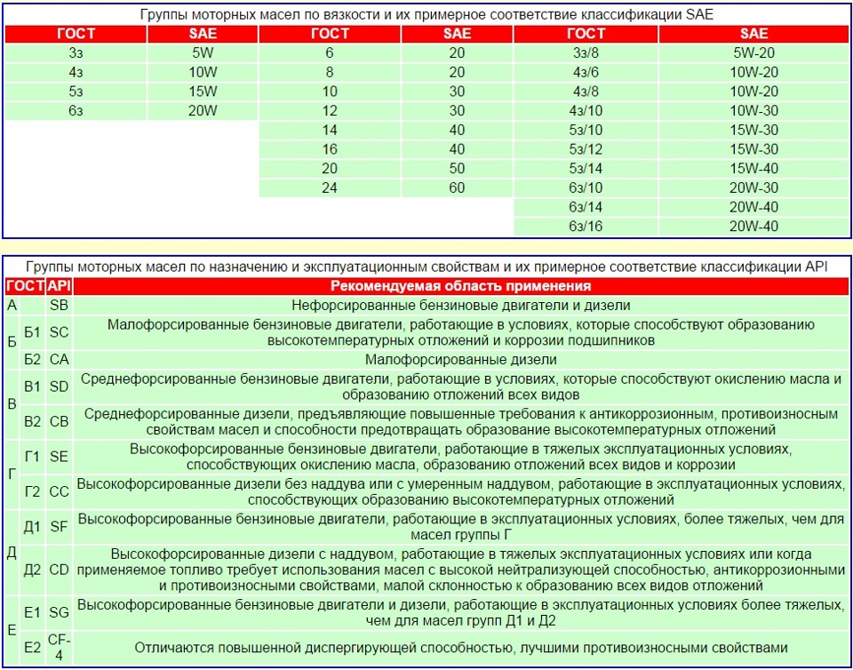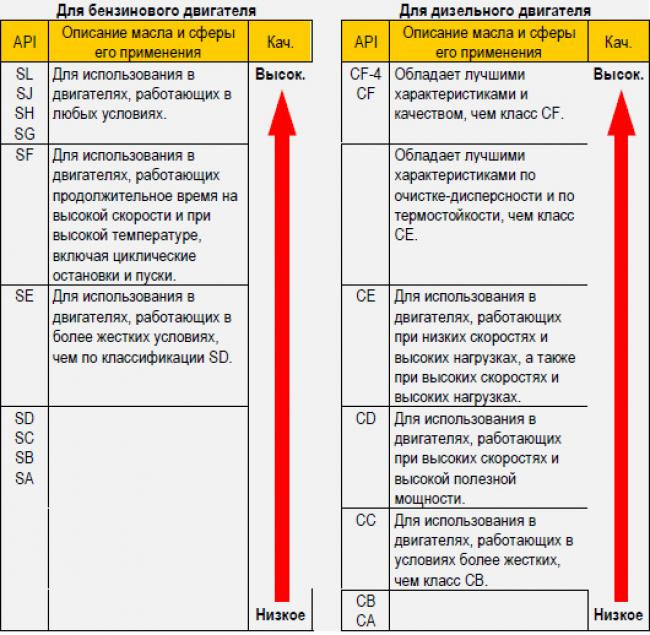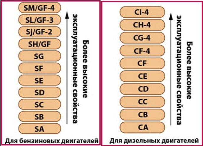 S для бензиновых двигателей — SE, SF, SG, SH, SJ и SL;