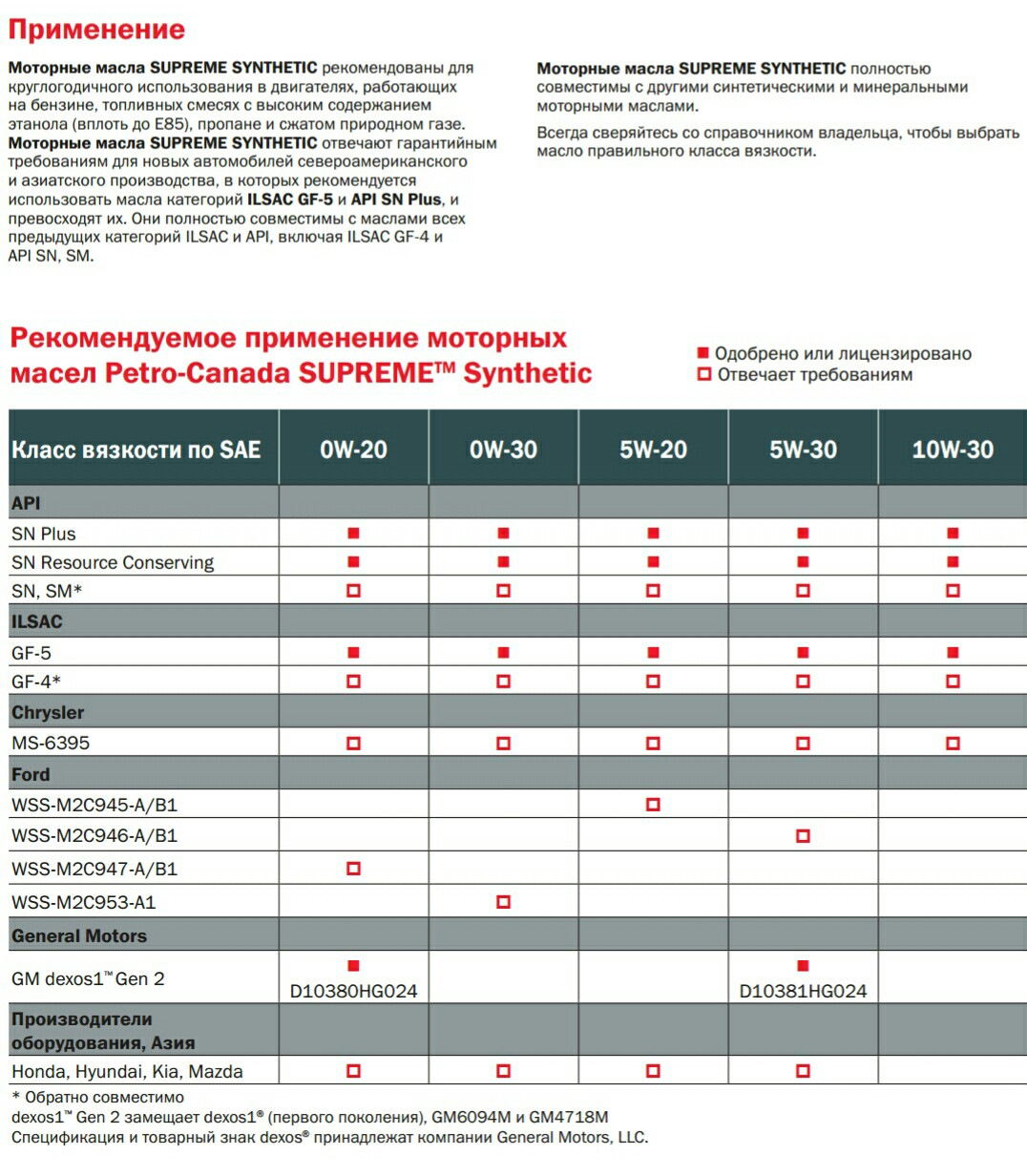 - категория ILSAC GF-1 (устарела), полностью соответствовала требованиям качества категории API SH; вязкости SAE 0W-XX, SAE 5W-XX, SAE 10W-XX; где XX — 30, 40 ,50, 60;