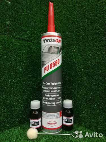 Существует специальный клей для лобового стекла, он должен быть высокого качества, ведь его используют для того, чтобы заклеить поломанный участок лобового, а также он должен полностью загерметизировать данный участок.