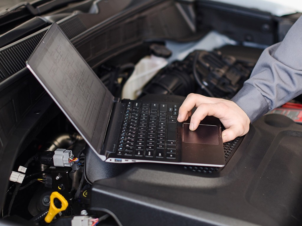 - Компьютерная диагностика. Выполняется путем подключения сканера к бортовому компьютеру автомобиля. Сканер считывает код ошибки, мастер расшифровывает его. Также сканер показывает важные для работы параметры: температура в системе, давление и др.