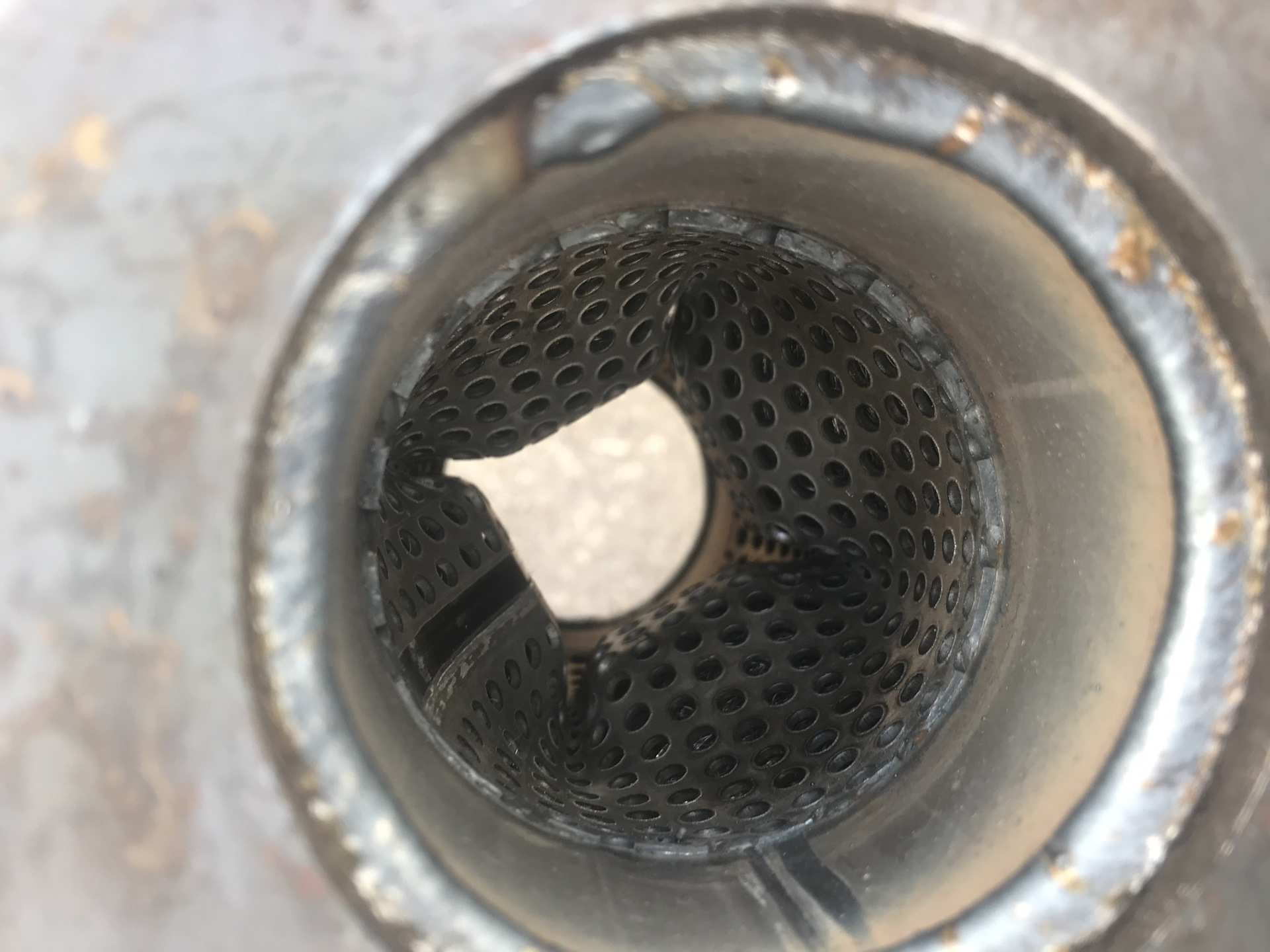 Внутри корпуса устанавливают перфорированную трубу, равную по диаметру трубопроводу. Диаметр отверстия перфорации зависит от характеристик двигателя и конструкции системы выхлопа.